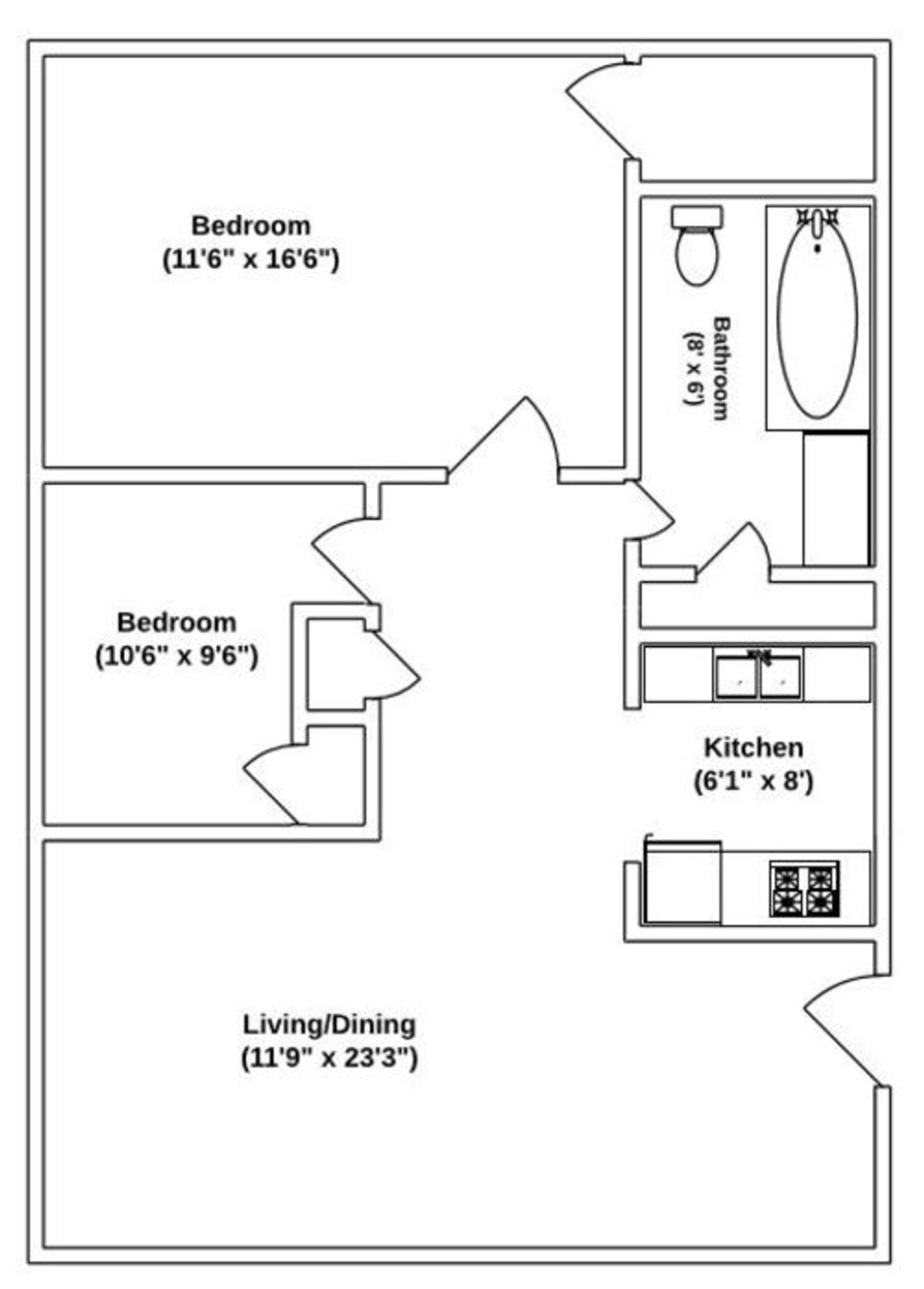 2B1B - 822 SF